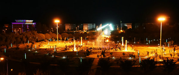 圖為:孟慶忠的作品《戈壁母親廣場(chǎng)夜景》