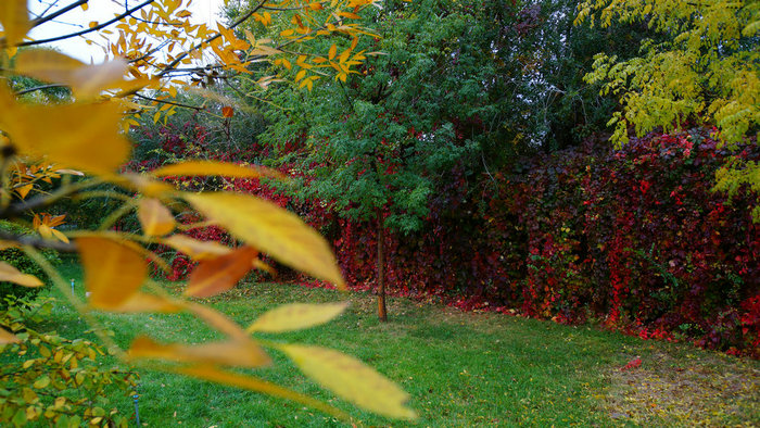 火紅的小果實(shí)像燈籠掛滿(mǎn)了樹(shù)枝,金黃的樹(shù)葉在白樺樹(shù)上隨風(fēng)搖曳,院墻上的爬墻虎葉子紅的耀眼,還有一些半黃半綠的樹(shù)葉留戀在樹(shù)枝上--------